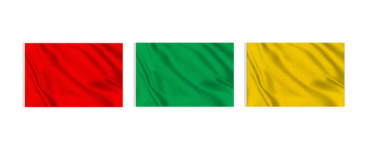 El conjunto completo de banderas de playa por lo general se compone de dos banderas rojas, dos banderas amarillas y dos banderas blancas. La bandera roja indica un peligro general y la prohibición de bañarse. La bandera amarilla indica la obligación de cerrar las sombras e invita a la atención de los bañistas y los nativos. La bandera blanca indica, en cambio, la presencia del servicio de rescate y, por lo tanto, la posibilidad de un baño seguro.